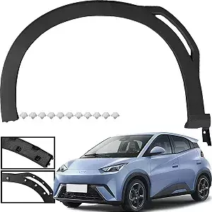 Acabamento externo do arco de roda dianteiro esquerdo (moldura do paralama), ideal para reposição no BYD Dolphin. Restaura o visual original, cobre pequenas imperfeições e garante encaixe preciso com a carroceria.